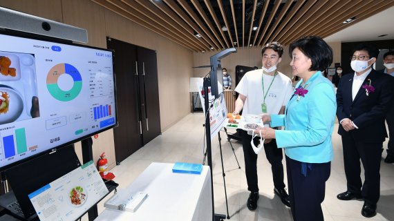 그린 중소벤처기업의 혁신성장을 위한 환경부와 중소벤처기업부 간의 업무협약식이 26일 서울 진흥로 한국환경산업기술원에서 열려 조명래 환경부 장관과 박영선 중소벤처기업부 장관이 환경기업의 개발기술과 제품설명을 듣고 있다. 사진=서동일 기자