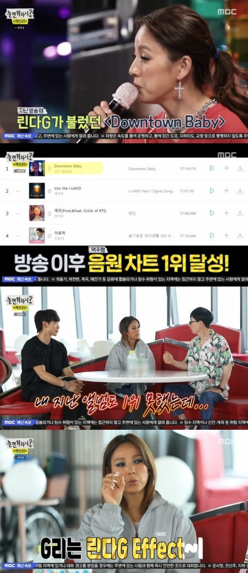 27일 오후 방송된 MBC '놀면 뭐하니?'에서 유재석은 이효리가 최근 방송에서 부른 블루의 '다운타운 베이비'가 역주행해 음원 차트를 1위를 한 것에 대해 언급했다.