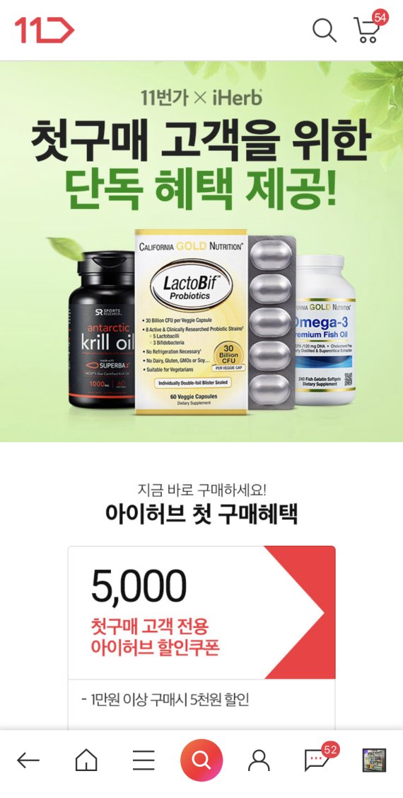 지난해 11번가는 국내 이커머스 업계 최초로 미국 최대 건강보조제품 및 생활용품 유통업체인 '아이허브'를 입점시켜 국내 직구족들에게 차별화된 쇼핑 환경을 마련하고 있다. 종합비타민, 영양제 등 건강보조상품부터 생활용품, 식료품, 뷰티제품 등 총 1만5000여개 상품들을 선보이고 있다.