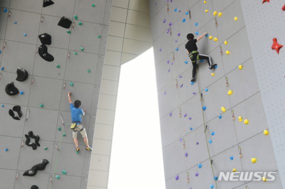 비가 올 때도 클라이밍을 즐길 수 있고, 암벽 높이는 전국 최고 높이인 18m다.