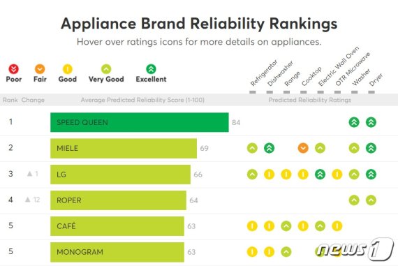 컨슈머리포트가 가전제품의 신뢰성을 기반으로 제조사별 순위를 매긴 것은 지난해에 이어 올해가 두번째다.