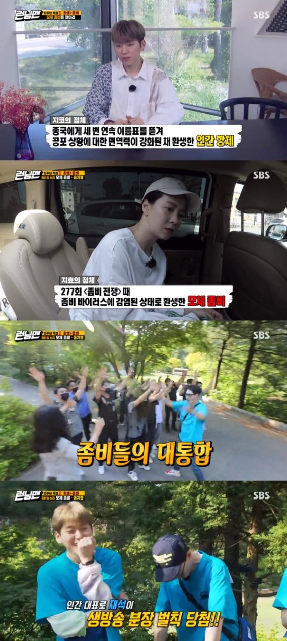 마지막 결정의 순간 유재석은 지코와 송지효를 선택했다. 송지효가 상급 좀비로 감염됐지만 백신을 먹었다는 주장을 받아들였기 때문. 하지만 송지효가 모체 좀비였다. 송지효는 '좀비 전쟁' 특집에서 아웃돼 좀비 바이러스에 감염된 채 환생한 것이었고, 나머지 멤버들이 환생한 회차는 송지효를 해코지한 편이었다. 그리고 전소민은 송지효의 조력자로서 맹활약했다. 결국 유재석은 좀비 추리에 실패, 생방송 벌칙을 수행하게 됐다.