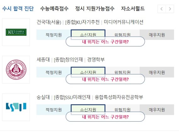 동시에 보다 정교한 수시 지원전략을 수립을 위해 2018~2020학년도 정시 실제 지원자들의 표본조사를 통해 최초합·추합·불합격자들의 성적을 분석한 ‘대학별 실제 커트라인’ 서비스도 이용할 수 있다.