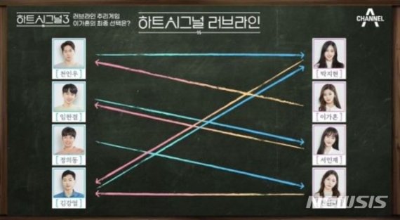 지난 8일 채널A 연애 리얼리티 프로그램 '하트시그널 시즌3'에서는 출연자들이 최종 선택을 하는 모습이 전파를 탔다. 박지현은 김강열에게 마음을 열었고, 임한결은 서민재와 커플이 됐다.