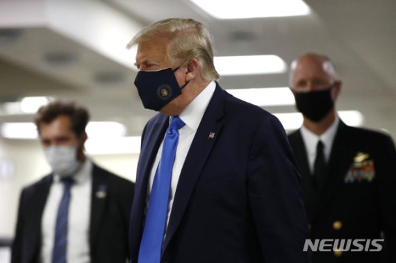트럼프 대통령은 11일 메릴랜드 교외에 있는 월터 리드 국립 군병원을 방문해 상이군인들과 의료진을 만나면서 마스크를 착용했다.