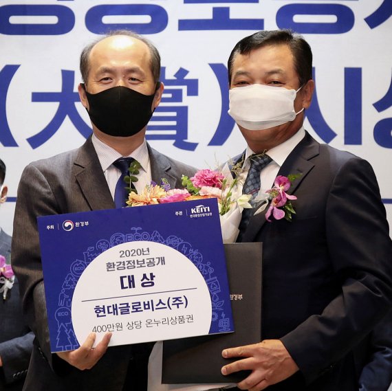 현대글로비스는 지난 10일 환경부가 주최하고 한국환경산업기술연구원이 주관한 '2020년 환경정보공개 대상' 시상식에서 대상인 환경부장관 표창을 수상했다고 13일 밝혔다.