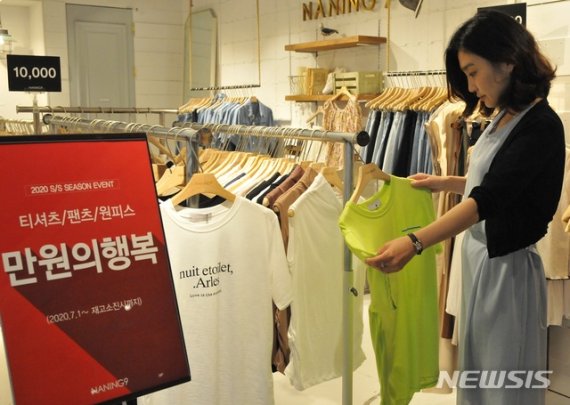 롯데백화점 대구점 5층 캐주얼 여성 의류 브랜드 난닝구 매장에서 티셔츠, 바지, 스커트 등을 1만원에 구매할 수 있다.