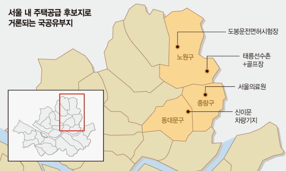 태릉골프장을 제외하고 수도권에서 주택부지로 활용 가능한 국공유지는 신이문차량기지, 도봉구 운전면허시험장, 서초구 예비군훈련장, 판교 코이카 부지, SH공사 부지, 서부터미널 등이다.