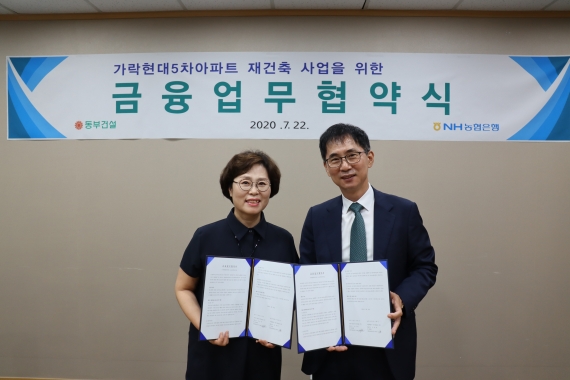 이번 협약은 가락현대5차아파트 재건축 사업에 들어가는 사업비와 이주비를 안정적으로 조달하기 위해 체결됐다. 동부건설은 오는 23일 우리은행과도 추가적인 금융업무협약을 체결할 예정이다.