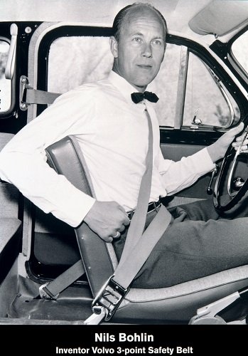 지난 61년간 생명 지킴이로 자리잡아온 3점식 안전벨트는 1959년 볼보자동차의 엔지니어, 닐스 볼린(Nils Bohlin)에 의해 세계최초로 선보였다. 이에 앞서 1957년부터 앞좌석에 2점식 안전벨트를 설치한 바 있는 볼보자동차는 버클의 위치가 사고 시 신체장기에 충격을 줄 수 있다는 문제점을 확인했다. 이를 개선하기 위해 항공기의 조종사 안전장치를 개발하던 닐슨 볼린(Nils Bohlin)을 안전기술자로 채용해 새로운 안전벨트 개발에 나섰다. 그 결과 탑승자가 한 손으로도 쉽게 맬 수 있으면서 탑승자를 보호할 수 있는 4가지 황금률을 개발하고 1958년 특허출원을 하게 됐다.