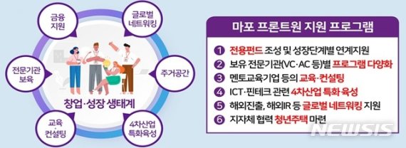 아울러 과학기술정보통신부의 'ICT 이노베이션 스퀘어'를 구축하는 등 ICT 분야 혁신 창업을 집중 지원하며 UNIDO(유니도·유엔산업개발기구)와 해외진출을 협력한다. 이어 서대문구청의 공공임대주택을 활용해 청년 창업인에게 공유오피스가 포함된 주거공간을 제공한다.