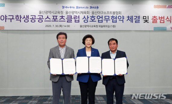 울산시교육청은 30일 시교육청 외솔회의실에서 울산시체육회, 울산야구소프트볼협회와 업무협약을 체결하고, 울산야구학생공공스포츠클럽 출범식을 열었다.