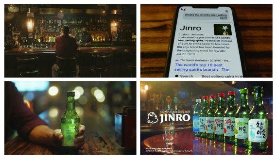 진로 글로벌 광고는 '전세계에서 가장 많이 팔린 증류주(The World's Best Selling Spirit)'라는 슬로건 아래, 총 두 편으로 제작됐다. 마트편 광고는 마트에서 어떤 술을 살지 고민하는 남자를 위해 옆에 있던 여자가 휴대폰으로 세계에서 가장 많이 팔린 증류주를 검색한다.