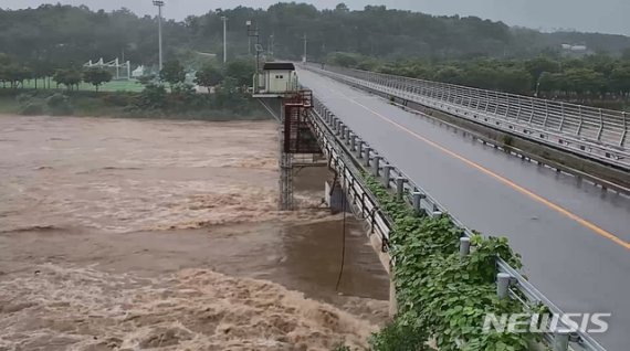 김 실장은 "중부 지역 집중 호우에 따라서 필승교 수위는 어제 새벽 한때 5m 이상 상승했지만 현재는 3m 수준으로 내려간 안정적인 상태"라고 설명했다.