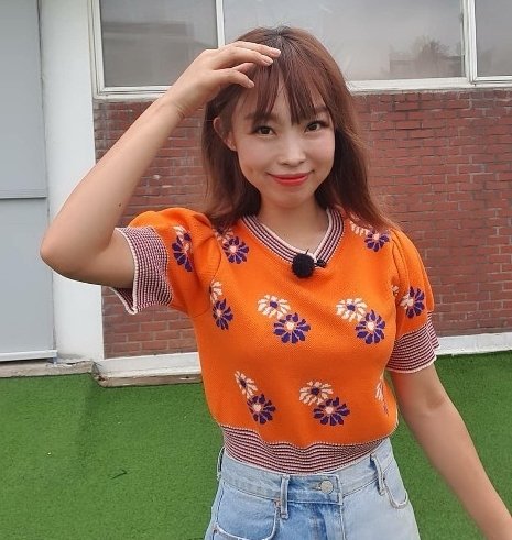 사진 속 오나미는 주황색의 니트 셔츠에 청바지를 입고 옅은 미소를 짓고 있다. 또 살짝 염색을 한 단발 머리와 깊게 파인 보조개가 그녀의 외모를 더욱 러블리하게 만들어주고 있었다.