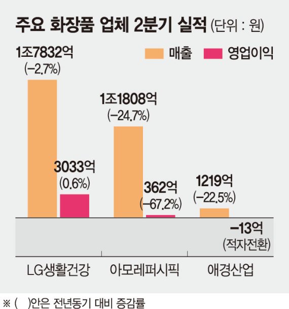 LG생활건강은 생활용품 및 음료 사업이 선방하며 무난한 실적을 기록했으나 화장품사업의 매출은 전년동기 대비 11.5%, 영업이익은 15% 각각 축소됐다.