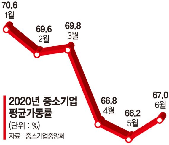 그만큼 중소기업들이 공장설비 가동을 크게 줄였다는 의미다. 코로나19 장기화에 따른 충격파가 커지고 있는 셈이다.