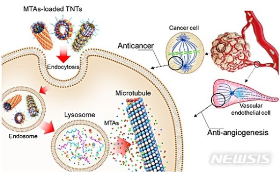 연구팀은 특히 항암제가 탑재된 TNT가 엔도좀-리소좀 경로로 암세포에 들어가 뛰어난 항암 및 혈관 형성 억제 효과를 보인다는 점을 세포 및 동물을 대상으로 한 실험을 통해 증명했다.