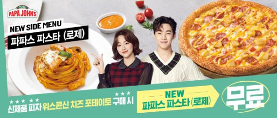 이번 프로모션은 신메뉴 위스콘신 치즈 포테이토 피자 구매 시 파파존스 피자가 새롭게 출시한 '파파스 파스타(로제)'가 제공된다. 토마토 소스와 크림 소스를 섞은 로제 소스에 그릴드 치킨을 얹은 파스타다.