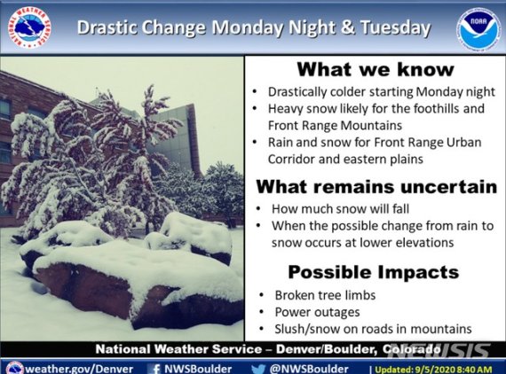 덴버에서 9월에 눈이 관측된 것은 지난 2000년 이후 20년 만이다.