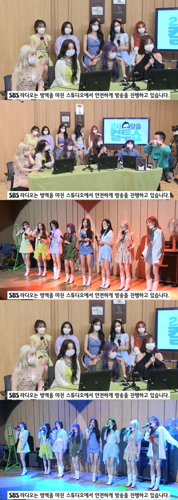 이날 미주는 하늘색 드레스를 입고, 마스크를 쓴 채 라디오 스튜디오에 등장했다. 이어 인사 후 지난 1일 발매한 신곡 '오블리비아테'(Obliviate)와 '카메오' 노래를 가창했다. 또한 미주는 별다른 멘트를 하지 않은 채, 웃거나 박수를 치는 등 리액션을 하며 생방송에 참여했다.