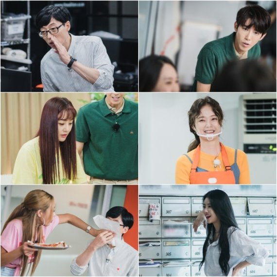 은밀히 질문을 던지는 유재석부터 앞치마와 위생 마스크를 쓰고 사업장 체험에 나선 전소민, 유재석의 입가를 살뜰히 닦아주는 '재석 바라기' 제시가 시선을 사로잡는다.