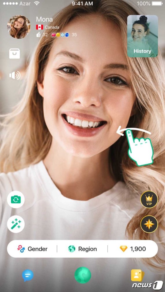 아자르는 화면을 넘기면서 새로운 이용자와 영상통화를 할 수 있는 소셜미디어로, 전 세계 230개국에서 19개 언어로 서비스되고 있다. 앱은 전 세계에서 총 4억회 이상의 다운로드 수를 기록했다.