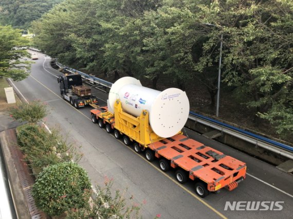 이번 육상운반시험은 두산중공업 내부 도로에서 사용후핵연료 이송시 발생할 수 있는 다양한 상황을 모사해 진행됐다.