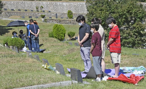 추석 명절을 열흘 앞둔 20일 오전 경기도 파주 용미리 추모공원을 찾은 시민들이 성묘를 하고 있다. 추석 연휴기간 코로나19 확산 방지를 위해 시립 장사시설의 성묘가 제한되는 만큼, 휴일을 맞아 서둘러 성묘를 하러 온 시민들로 붐비고 있다. 사진=박범준 기자