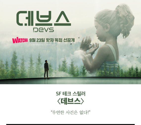 [파이낸셜뉴스] 온라인 동영상 스트리밍 서비스 왓챠의 신규 SF 테크 스릴러 미드 '데브스가 23일 첫선을 보인다. 왓챠는 데브스를 이날 오후 5시에 서비스한다고 밝히며 메인 예고편을 공개했다.