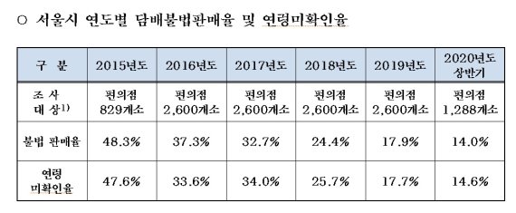 서울시는 매년 상·하반기에 총 2600개소 편의점을 대상으로 담배 불법판매 모니터링을 실시하고 있다.