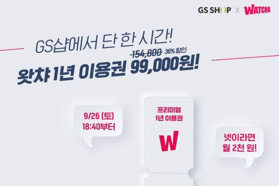 GS샵이 오는 26일 TV홈쇼핑 최초로 개인화 큐레이션 전문 OTT 서비스 '왓챠'의 프리미엄 12개월 이용권을 단독 판매한다고 25일 밝혔다.
