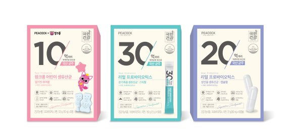 기존 피코크 유산균 상품보다 장내 보장 균수를 높인 것도 특징이다. 요쿠르트맛으로 온 가족이 쉽게 섭취 가능한 분말스틱형은 하루 장내 보장 균수가 30억마리다. 성인을 위한 캡슐형과 어린이를 위한 곰돌이 모양의 딸기맛 츄어블형은 각각 20억마리, 10억마리의 유산균을 보장한다.