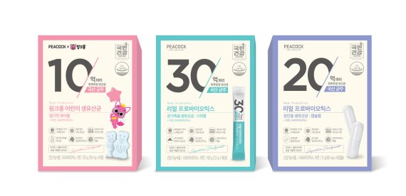 이번 신제품은 Δ피코크 리얼 프로바이오틱스 분말스틱형 Δ피코크 리얼 프로바이오틱스 캡슐형 Δ피코크X핑크퐁 어린이 생유산균 3가지다. 세 제품 모두 기존 자사 유산균 상품보다 장내에서 생존하는 균 수를 늘린 것이 특징이다.