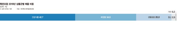 13일 한국특수판매공제조합이 분석한 2019년 상위 10개사의 매출 비중을 보면 건강기능식품이 42.7%, 화장품이 34.6%를 각각 차지했다. 건기식이 확고한 1위 아성을 지키고 있지만 생활용품(20%)까지 합치면 뷰티·생활용품의 비중도 무시 못할 수준으로 성장했다는 분석이다.