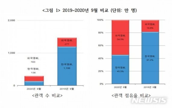 이는 지난 8월 보수단체의 광복절 집회 이후 교회를 중심으로 코로나19가 재확산된 데 따른 영향이다. 지난 6월 영화관 입장료 할인권 배포 및 신작 개봉 등으로 여름 성수기인 8월까지는 관객 수 상승세가 이어졌지만, 이후 수도권의 사회적 거리두기 2.5단계 격상 등으로 감소세를 보였다.