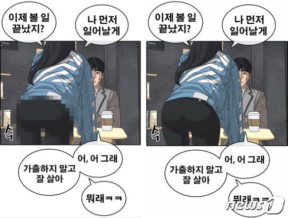 (서울=뉴스1) 송화연 기자 = 네이버웹툰 '인생존망'의 여성 캐릭터 뒷모습이 모자이크 처리가 됐다가 원상 복구되는 일이 일어났다. 계속되는 웹툰 검열논란에 온라인상에는 'K-검열'이라는 단어까지 등장했다.