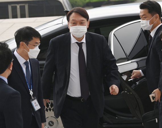 윤석열 검찰총장이 22일 오전 서울 여의도 국회에서 열리는 국회 법사위의 국정감사에 출석하기 위해 국회 본청으로 들어서고 있다. 사진=박범준 기자