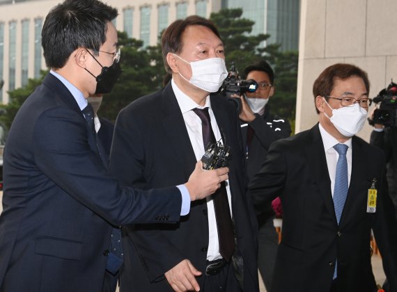 윤석열 검찰총장이 22일 오전 서울 여의도 국회에서 열리는 국회 법사위의 국정감사에 출석하기 위해 국회 본청으로 들어서고 있다. 사진=박범준 기자