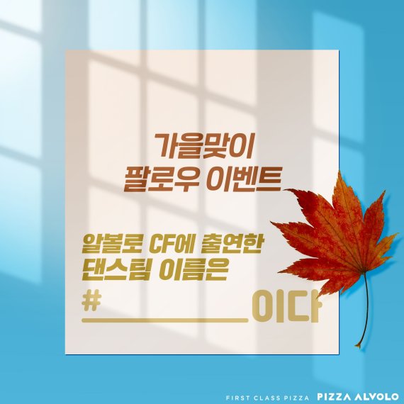 이벤트는 피자알볼로 공식 인스타그램을 팔로우한 후, '피자알볼로 CF에 출연한 댄스팀 이름'에 해당되는 퀴즈 정답을 해시태그와 함께 댓글로 달면 참여 완료된다. 퀴즈의 정답은 '앰비규어스'로, 최근 온에어된 피자알볼로 TV 광고에서 퓨전국악그룹 '이날치'와 함께 중독성 있는 퍼포먼스를 선보이며 큰 관심을 모은 바 있다.