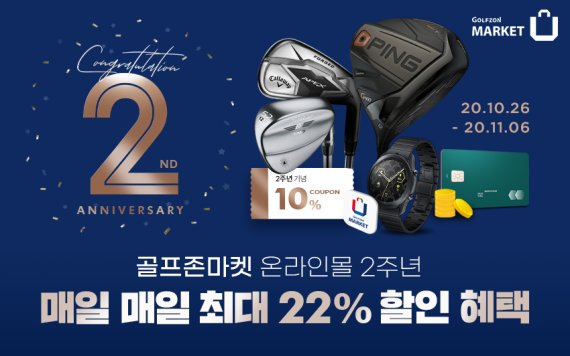 이벤트는 2주년 기념 최대 22% 할인 행사와 구매왕 이벤트로 나뉘어 진행된다. 할인 행사 기간 중 ‘원데이 특가’를 통해 매일 한 제품씩 랜덤으로 △핑 G400 드라이버·우드·유틸리티 △갤럭시워치3 PXG 에디션 △테일러메이드 M6 아이언 △브리지스톤 TOUR B J819 드라이버 등 유명 브랜드의 인기 제품을 특가로 구입할 수 있다.