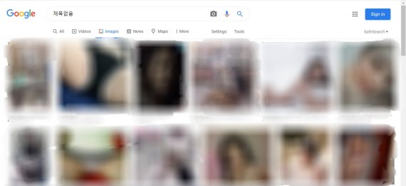 성(性)과 무관한 단어를 검색했을 때도 음란물은 검색됐다. '제목없음'이 대표적인 예다. 사용 언어를 바꾸고 구글 검색창에 '제목없음'을 입력하자 마치 성인물 검색어라도 입력한 양 각종 노출 사진들이 검색 결과에 노출됐다.