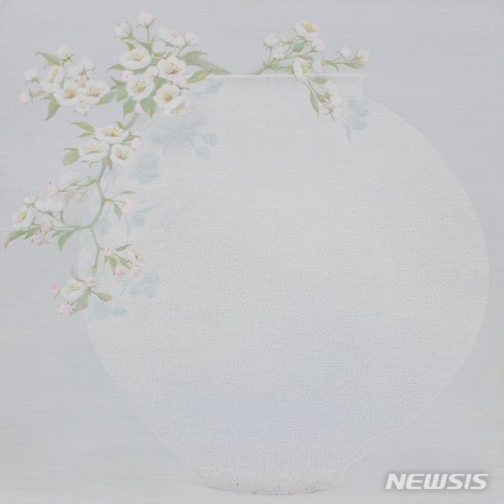 [서울=뉴시스] 남정현 기자 = '2020마니프-뉴시스 온라인 아트페어'(kartpark.net)에 '이화에 월백하고', '마음 달항아리' 2점을 전시한 이영순 작가의 작품은 '빙렬(氷裂)' 이 돋보인다.