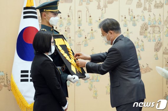 문 대통령은 이날 오전 11시 청와대 본관에서 전태일 열사 국민훈장 무궁화장 추서식을 열고 무궁화장을 추서했다. 고인이 1970년 11월 '내 죽음을 헛되이 하지 마라! 근로기준법을 준수하라! 우리는 기계가 아니다!'라고 외치며 분신한 지 50년 만이다.