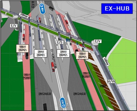 이는 GTX 용인역 인근 경부고속도로 상부에 보행자 다리를 연결해 GTX에서 고속도로는 물론 버스와 지하철(구성역)로 편리하게 환승할 수 있도록 한 것이다.