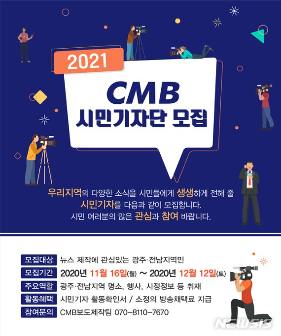 CMB는 시청자미디어재단 광주시청자미디어센터와 함께 2021년 활동할 시민기자를 새롭게 모집한다고 17일 밝혔다.