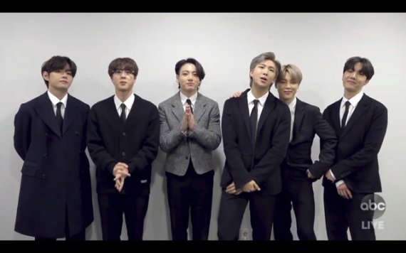 이날 시상식에서 '팝/록 장르 페이보릿 듀오/그룹' 수상자로 호명된 방탄소년단은 영상을 통해 수상 소감을 밝혔다.