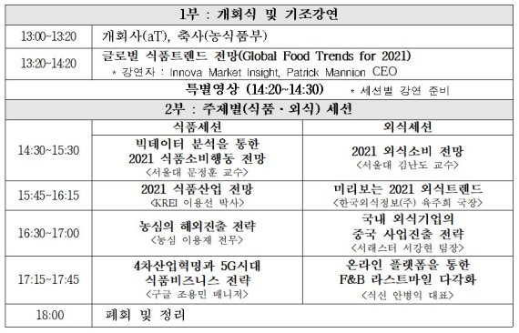 농식품부, 2021 식품외식산업 전망대회 온라인 개최