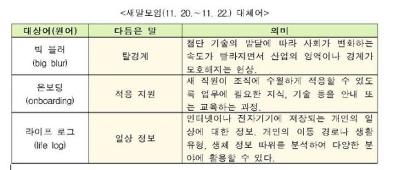 또 인터넷이나 전자기기에 저장되는 개인의 일상에 대한 정보인 '라이프 로그(life log)'를 대신해서는 '일상 정보'를 권유했다.