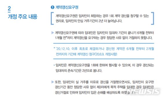 하지만 오는 12월10일 이후 최초로 계약되거나 갱신된 임대차계약은 임대차 기간이 끝나기 6개월 전부터 2개월 전까지 계약갱신청구권을 행사해야 한다.